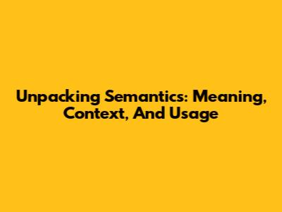 Unpacking Semantics: Meaning, Context, And Usage