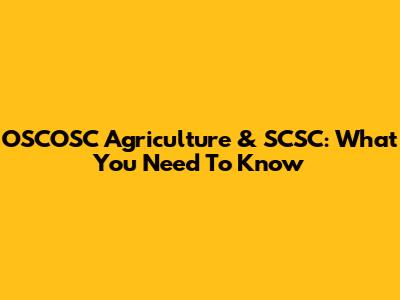 OSCOSC Agriculture & SCSC: What You Need To Know