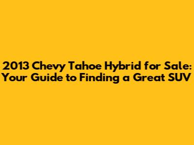 Hey there, car enthusiasts! Are you on the hunt for a fuel-efficient SUV that doesn't compromise on space or capability? Well, buckle up, because we're diving deep into the world of the 2013 Chevy Tahoe Hybrid for sale. This isn't just any SUV, guys; it's a blend of power, practicality, and, let's not forget, a greener footprint. Finding a reliable used car can be a journey, but we're here to make it a smooth ride. We will explore everything from where to find these gems, to what to look out for, and even touch on what makes the Tahoe Hybrid stand out from the crowd. So, whether you're a seasoned hybrid driver or just curious about making the switch, this guide has you covered. Let's get started and find you the perfect 2013 Chevy Tahoe Hybrid!