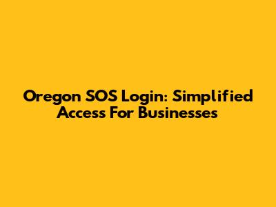 Oregon SOS Login: Simplified Access For Businesses