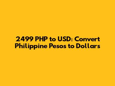 As of today, let’s assume the exchange rate is approximately 1 PHP = 0.018 USD. Keep in mind that this is just an example and the real rate might be slightly different when you check. So, if you were to convert 2499 PHP to USD using this rate, the calculation would look like this: