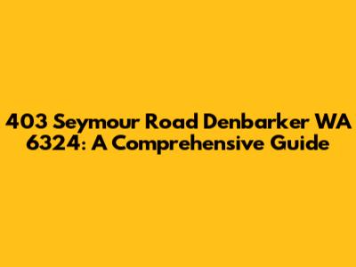 Let's dive deep into everything you need to know about 403 Seymour Road, Denbarker WA 6324. This guide will provide you with a thorough overview, whether you're considering moving to this location, investing in property there, or simply curious about the area. Denbarker, located in Western Australia, is a charming rural town known for its scenic beauty and close-knit community. Understanding the nuances of a specific address like 403 Seymour Road requires a detailed look at its surroundings, local amenities, and the overall lifestyle it offers. This article aims to be your go-to resource for all things related to this particular address, offering insights into its potential and what makes it a unique place to consider. From property values to community highlights, we've got you covered, ensuring you have all the information at your fingertips to make informed decisions. So, let's get started and explore the ins and outs of 403 Seymour Road, Denbarker WA 6324!