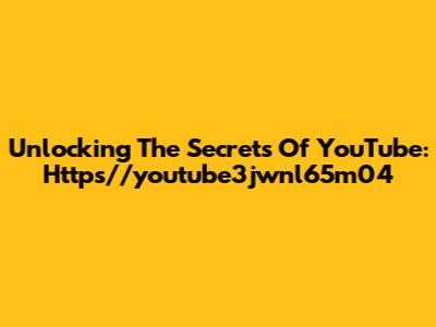 Unlocking The Secrets Of YouTube: Https//youtube3jwnl65m04