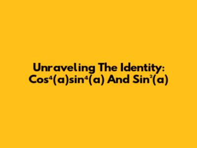 Unraveling The Identity: Cos⁴(a)sin⁴(a) And Sin²(a)
