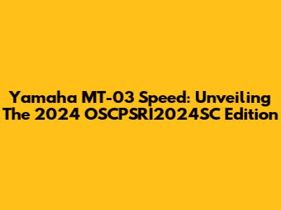 Yamaha MT-03 Speed: Unveiling The 2024 OSCPSRI2024SC Edition