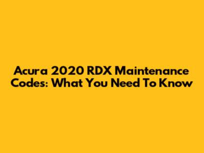 Acura 2020 RDX Maintenance Codes: What You Need To Know