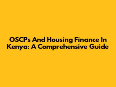 OSCPs And Housing Finance In Kenya: A Comprehensive Guide