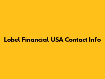 Lobel Financial USA Contact Info