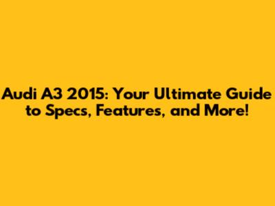 Decoding the Audi A3 2015: What's Under the Hood?