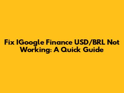 Fix IGoogle Finance USD/BRL Not Working: A Quick Guide