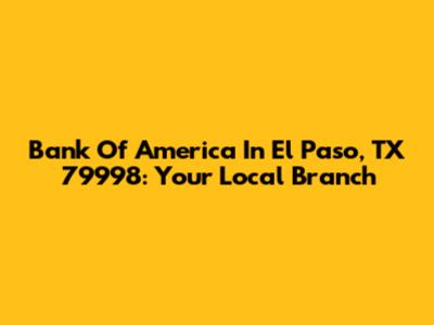 Bank Of America In El Paso, TX 79998: Your Local Branch