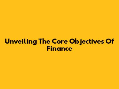 Unveiling The Core Objectives Of Finance
