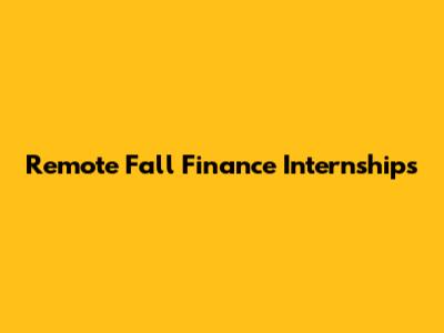 Remote Fall Finance Internships