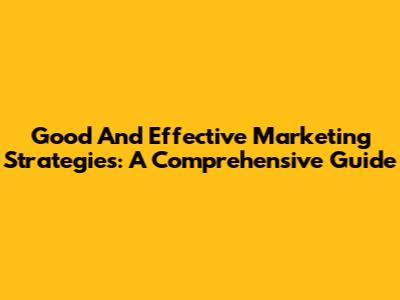 Good And Effective Marketing Strategies: A Comprehensive Guide