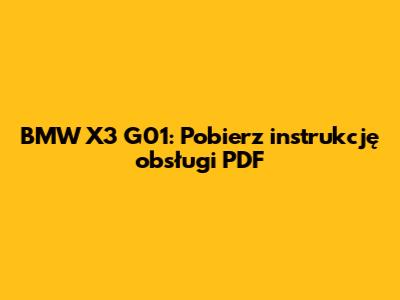 BMW X3 G01: Pobierz Instrukcję Obsługi PDF