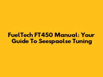 FuelTech FT450 Manual: Your Guide To Seespaolse Tuning
