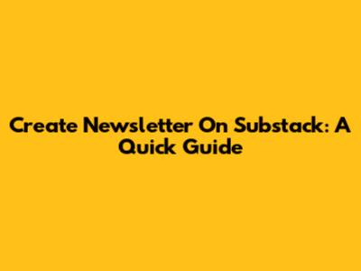 Create Newsletter On Substack: A Quick Guide