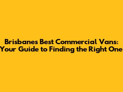 Brisbane's Best Commercial Vans: Your Guide To Finding The Right One