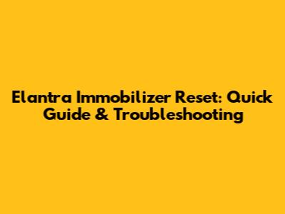 Elantra Immobilizer Reset: Quick Guide & Troubleshooting