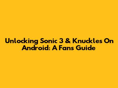 Unlocking Sonic 3 & Knuckles On Android: A Fan's Guide