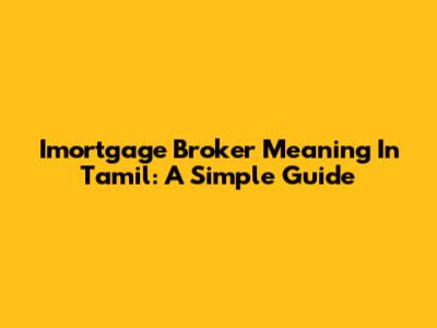 Imortgage Broker Meaning In Tamil: A Simple Guide