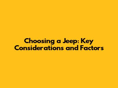 Choosing the right Jeep can be an exciting but also overwhelming process, guys. With so many models, trims, and options available, it’s essential to carefully consider your needs and preferences to ensure you make the best decision. This article dives deep into the key considerations and factors you should keep in mind when choosing a Jeep that perfectly fits your lifestyle and adventures. We'll break down everything from your budget and intended use to the specific features and capabilities you should prioritize. So, buckle up and let's get started on your Jeep-buying journey!