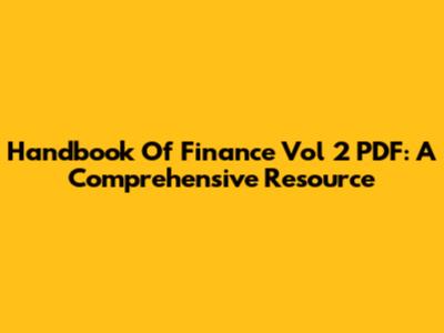 Handbook Of Finance Vol 2 PDF: A Comprehensive Resource