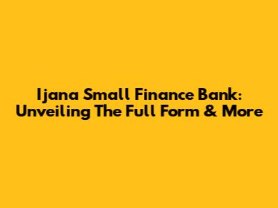 Ijana Small Finance Bank: Unveiling The Full Form & More