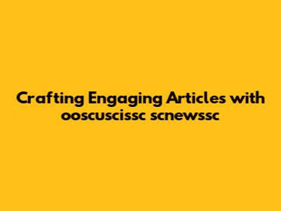 Step-by-Step Guide: Creating Articles with ooscuscissc scnewssc