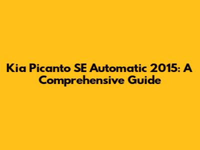 Kia Picanto SE Automatic 2015: A Comprehensive Guide