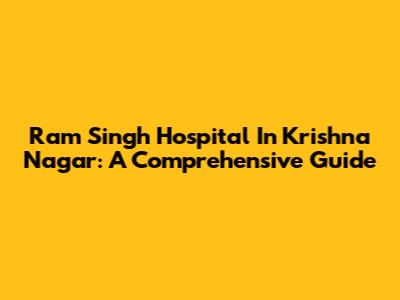 Ram Singh Hospital In Krishna Nagar: A Comprehensive Guide