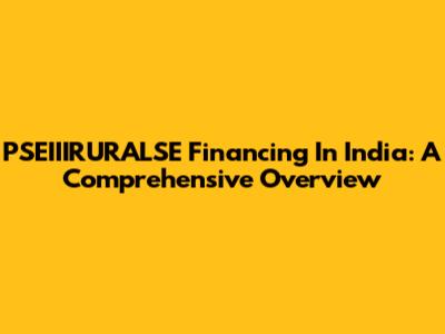PSEIIIRURALSE Financing In India: A Comprehensive Overview