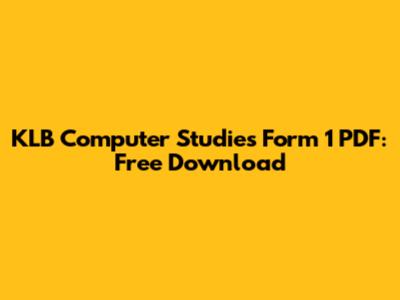 KLB Computer Studies Form 1 PDF: Free Download