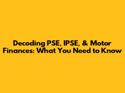 Navigating the world of PSE, IPSE, and motor finances can feel like deciphering a secret code, right? No worries, guys! Let's break down these terms and make them super easy to understand. This guide is designed to provide you with a comprehensive overview, ensuring you’re well-equipped to make informed decisions. We’ll explore each concept in detail, providing practical insights and real-world examples to help you grasp the essentials. Whether you're a seasoned investor or just starting out, this article has something for everyone.