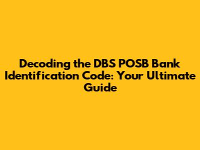 Hey guys, let's dive into something that might seem a bit technical but is super important when you're dealing with banking, especially with DBS and POSB: the Bank Identification Code (BIC), also sometimes called the SWIFT code. Don't worry, it's not as scary as it sounds! Think of it like a unique ID for a bank, like a fingerprint. Knowing the BIC for DBS or POSB can be a lifesaver when you're making international money transfers, receiving payments from overseas, or setting up direct debits. In this guide, we'll break down everything you need to know about the DBS POSB BIC, why it matters, and how to find it. We'll also cover some common questions and scenarios where this code comes into play. So, buckle up, and let's get started on understanding this crucial piece of banking information. We'll make it as easy as possible, so you'll be an expert in no time!