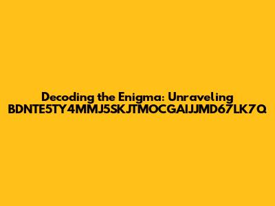Hey there, fellow knowledge seekers! Ever stumbled upon a seemingly random string of characters, a digital riddle that just begs to be solved? Well, today, we're diving headfirst into the mysterious world of BDNTE5TY4MMJ5SKJTMOCGAIJJMD67LK7Q! This isn't just a jumble of letters and numbers; it's a potential key, a hidden message, or maybe just a unique identifier waiting to be understood. Let's embark on this investigative journey together, exploring the possibilities and attempting to decode this intriguing sequence. This exploration is all about understanding the context, the potential meanings, and the methods we can use to crack the code, so to speak. We'll approach it with curiosity, a dash of detective work, and a whole lot of enthusiasm. Prepare to put on your thinking caps, because we're about to unravel the enigma that is BDNTE5TY4MMJ5SKJTMOCGAIJJMD67LK7Q!
