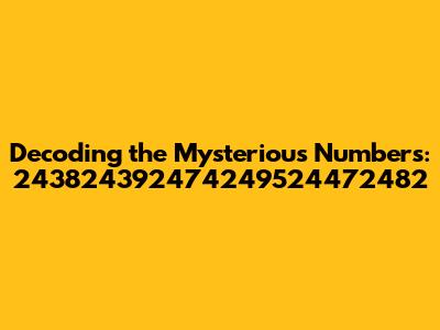 Okay, so first things first. We've got this long number: 243824392474249524472482. What does our brain tell us when we first look at it? Well, it's long, that's for sure. It's a series of digits, with no immediately obvious pattern. This immediately sparks curiosity. Could it be a date? A product code? A serial number? Or something more complex? The possibilities are endless, and that's what makes this so fun.