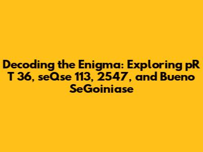 Alright, guys, let's dive headfirst into this intriguing puzzle! We're talking about pR T 36, seQse 113, 2547, and Bueno SeGoiniase. Initially, it might seem like a random string of characters and numbers, but trust me, there's a story here. Our goal is to dissect each component, understand their potential significance, and, hopefully, stitch together a coherent narrative. Buckle up, because we're about to embark on a journey of discovery. The main keywords in this article are pR T 36, seQse 113, 2547, and Bueno SeGoiniase. We'll be breaking down each element of these keywords and how they might connect, so you won't want to miss it.
