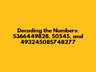 Alright guys, ever stumbled upon a random string of numbers and wondered what it all meant? Well, today we're diving deep into the mysterious world of digits, specifically focusing on three intriguing number sequences: 5366449828, 50545, and 493245085748277. No need to be a math whiz or a codebreaker; we'll break it down in a way that’s easy to grasp, exploring potential meanings, contexts, and maybe even a little bit of numerology. Let's get started and unravel these numerical enigmas together!