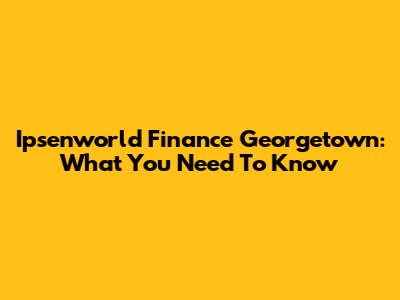 Ipsenworld Finance Georgetown: What You Need To Know