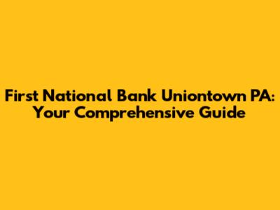 First National Bank Uniontown PA: Your Comprehensive Guide