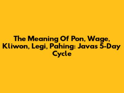 The Meaning Of Pon, Wage, Kliwon, Legi, Pahing: Java's 5-Day Cycle