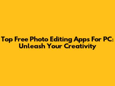 Top Free Photo Editing Apps For PC: Unleash Your Creativity
