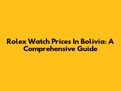 Rolex Watch Prices In Bolivia: A Comprehensive Guide