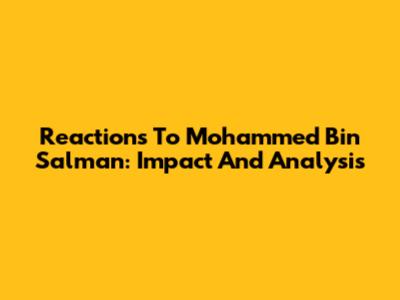 Reactions To Mohammed Bin Salman: Impact And Analysis