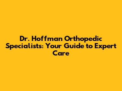 Dr. Hoffman Orthopedic Specialists: Expert Care & Solutions