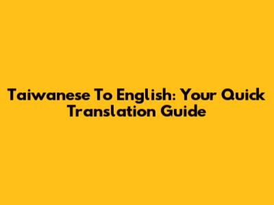 Taiwanese To English: Your Quick Translation Guide
