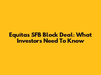 Equitas SFB Block Deal: What Investors Need To Know
