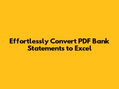 Are you struggling to convert your PDF bank statements into Excel spreadsheets? You're not alone! Many people find themselves in this situation, whether it's for personal finance tracking, business accounting, or data analysis. Dealing with bank statements often involves a lot of manual data entry, which can be time-consuming and prone to errors. But fear not, guys! There are several methods and tools available to make this process smooth and efficient. In this article, we'll dive into the best ways to convert your PDF bank statements to Excel, saving you time and headaches. We'll explore both free and paid options, discuss the pros and cons of each, and give you some handy tips to ensure accurate data conversion. So, let's get started and make your financial data management a breeze!