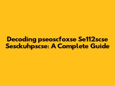 Decoding 'pseoscfoxse Se112scse Sesckuhpscse': A Complete Guide